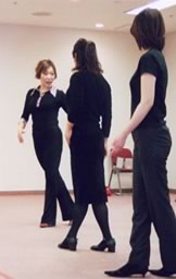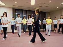 ウォーキングいよいよウォーキングの練習へ。最初はスニーカー歩きです。「重力に抗して真っすぐ、カラダの中心に1本線が通っているように〜」…と言っても難しいですから、意識してカラダで覚えるようにしましょう。一人一人にウォーキングの基礎を指導しますので、繰り返すうちにカラダ全体がしなやかに動き、正しく筋肉が使われてキレイにカッコよく歩けるようになりますよ。 |