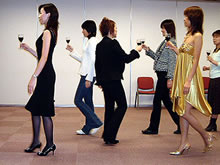 実践パーティースタイルパーティスタイルも企画します。ヒールを履きドレスを着て、パーティースタイルでウォーキングを実践的に学びます。普段のウォーキングと違い、ロングドレスの裾の動きにも優雅さが出るモデルウォークをしてみましょう。この歩き方を身につけると、結婚式、会社のパーティなどでの立ち居振る舞いが美しくなり、堂々としていられますよ。 |